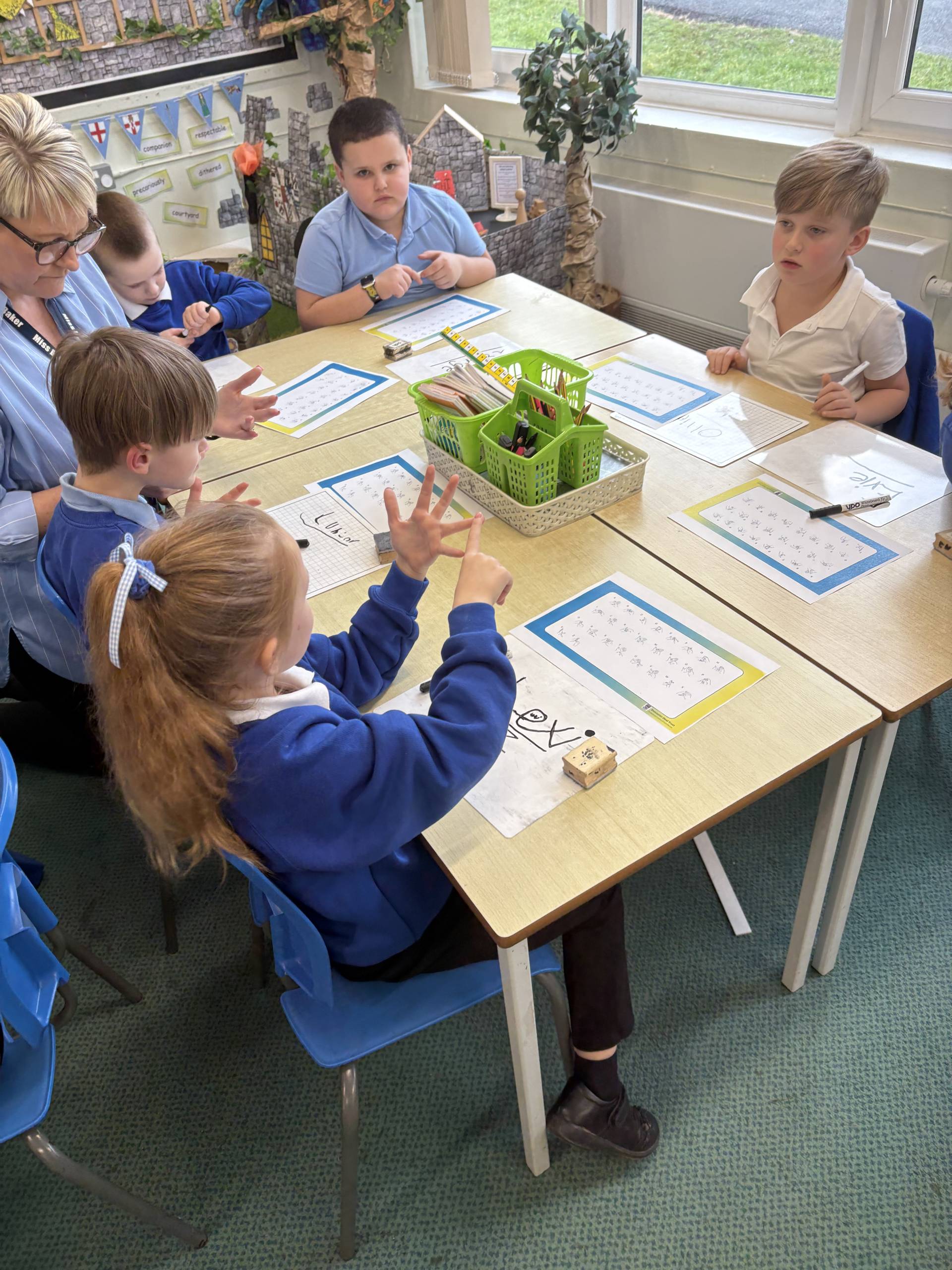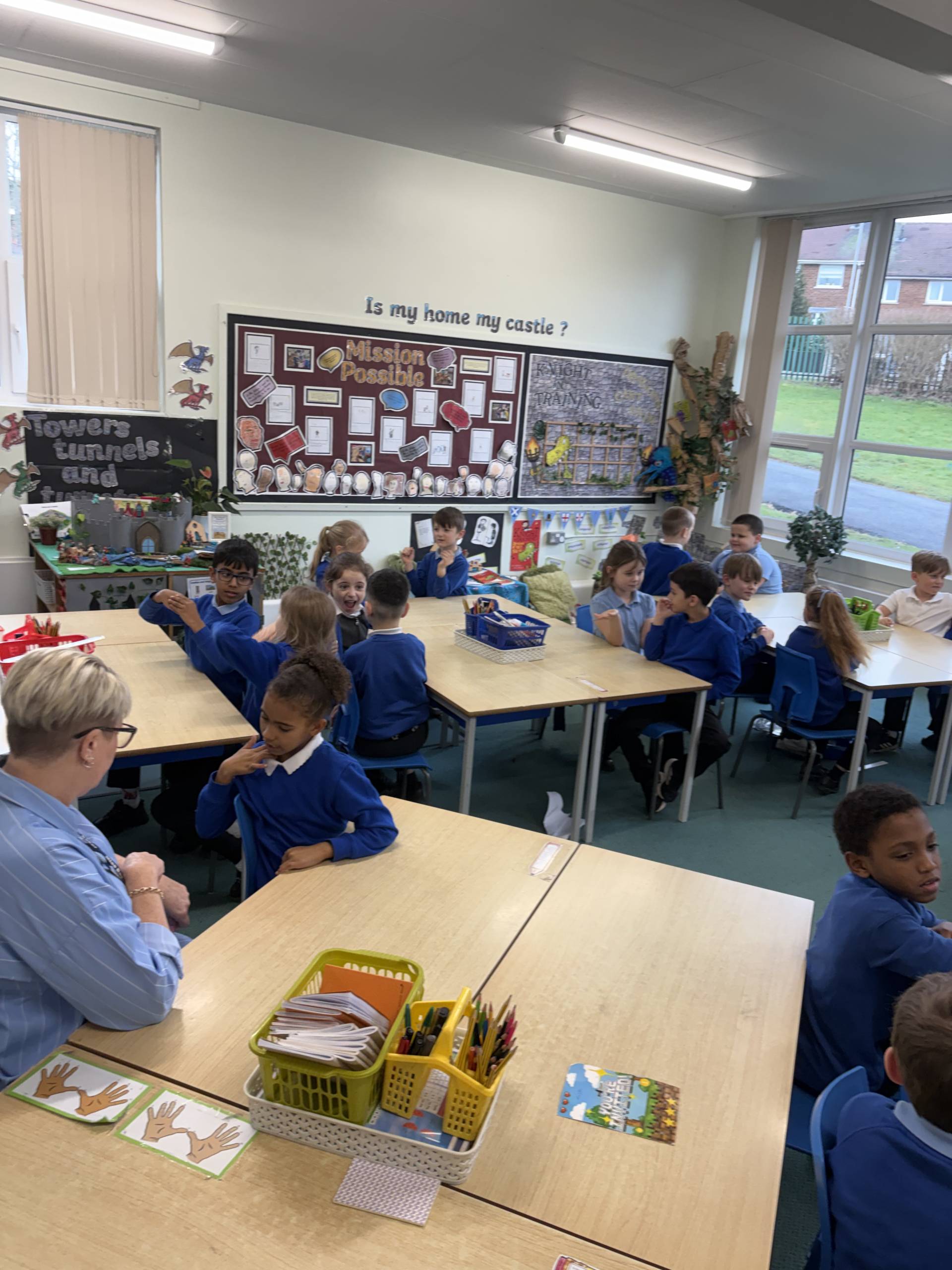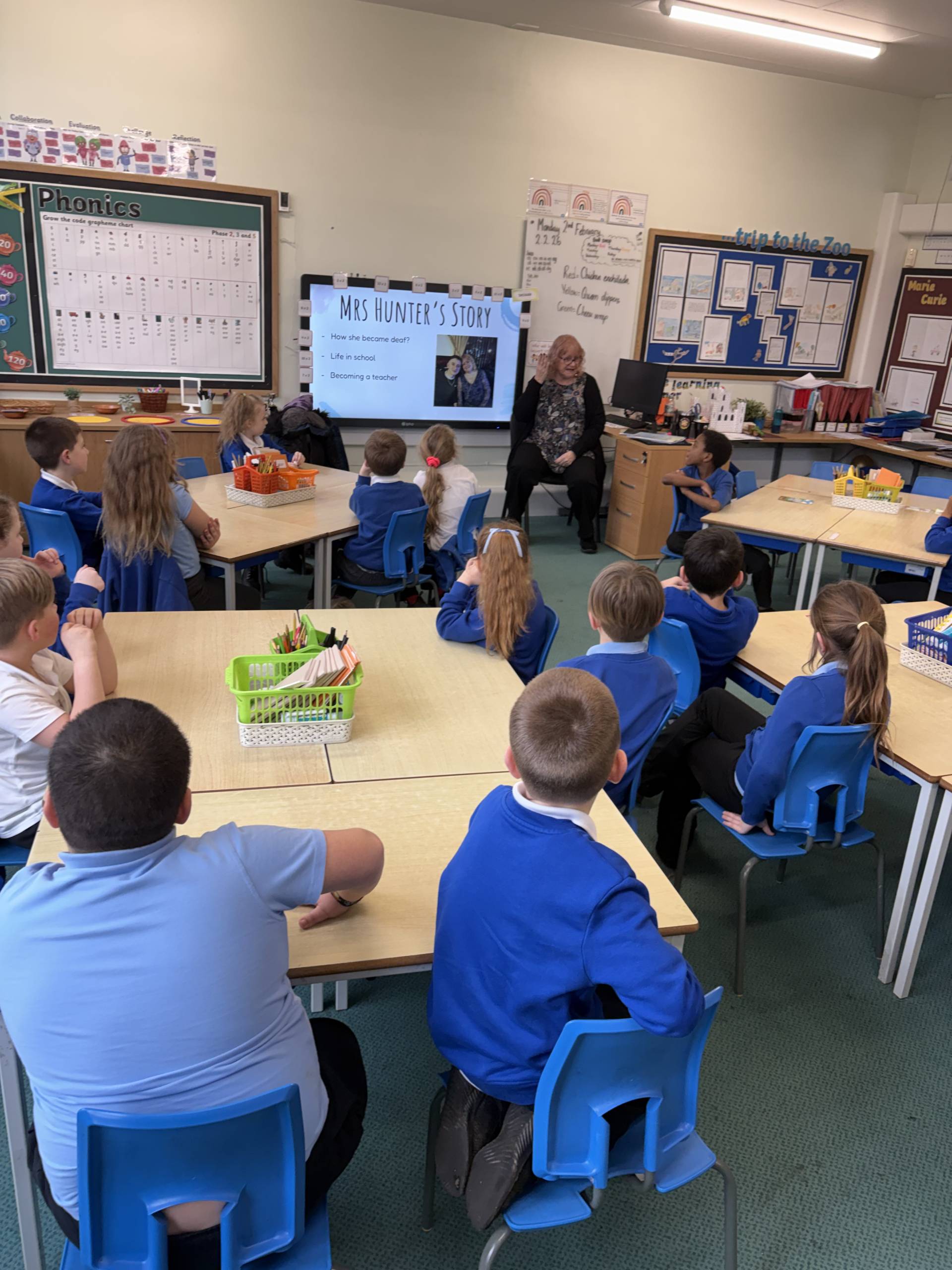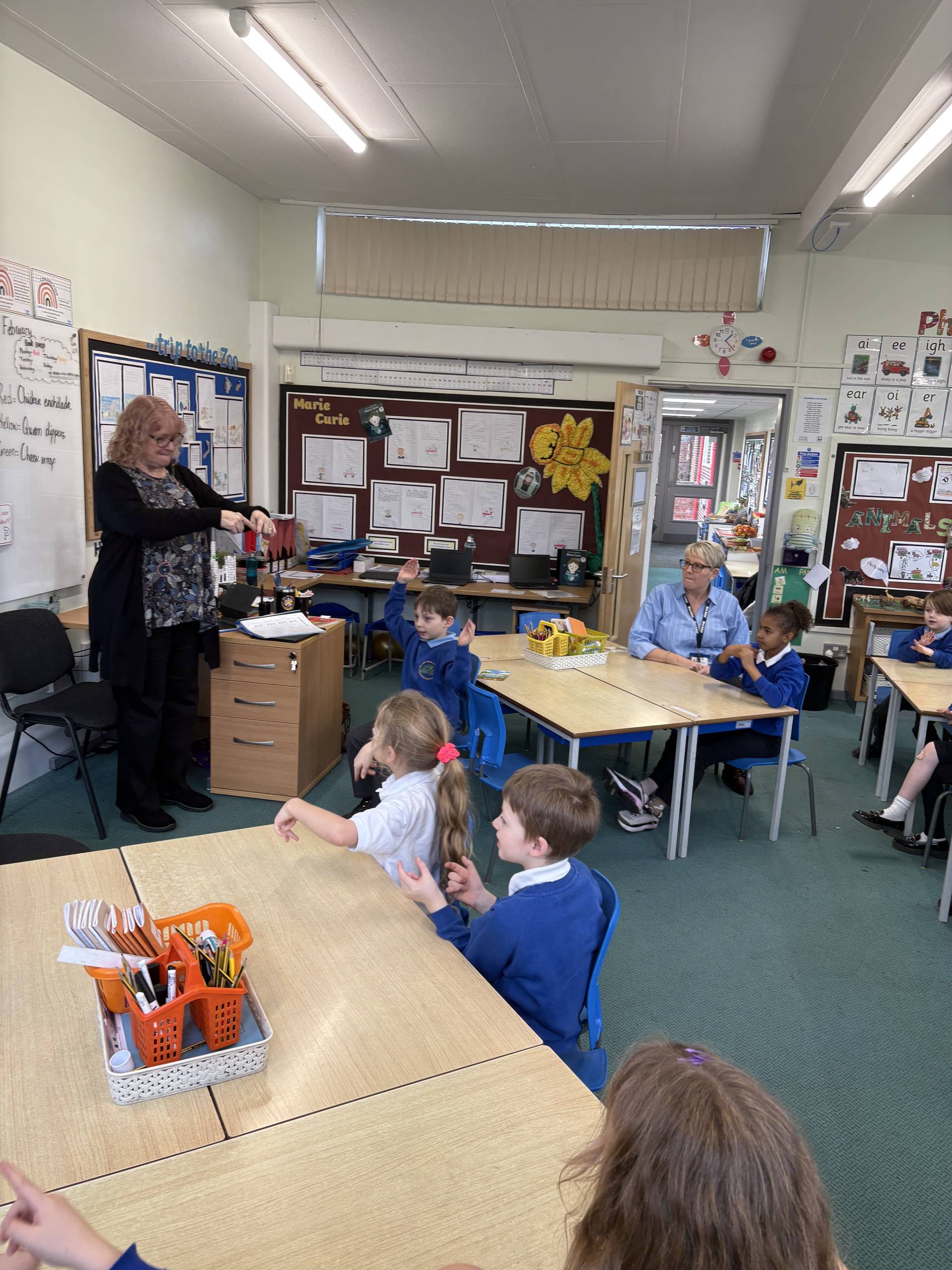 In PSHE we had a special visitor… Mr Hunter’s mum! She is currently a teacher at a deaf specialist school in Doncaster but luckily had the time to visit our school today. She shared her journey with being deaf and how she became a teacher. Then she showed us how to sign simple greetings which we hope to use in school to support our scaling. Afterwards, we learned how to show our name by using the alphabet. It was amazing to see the children showing this to their parents/carers after school! We cannot wait until our next sessions.