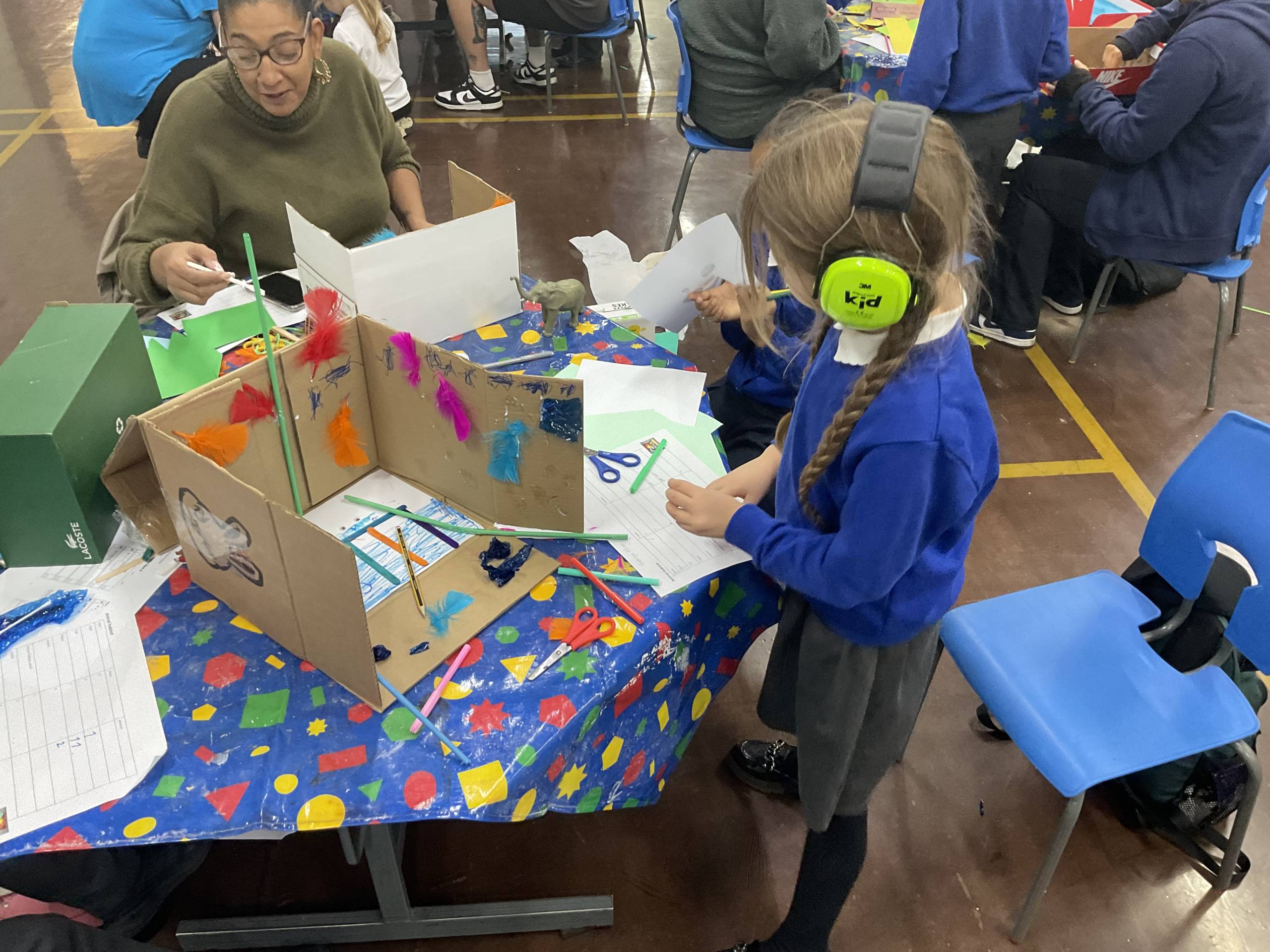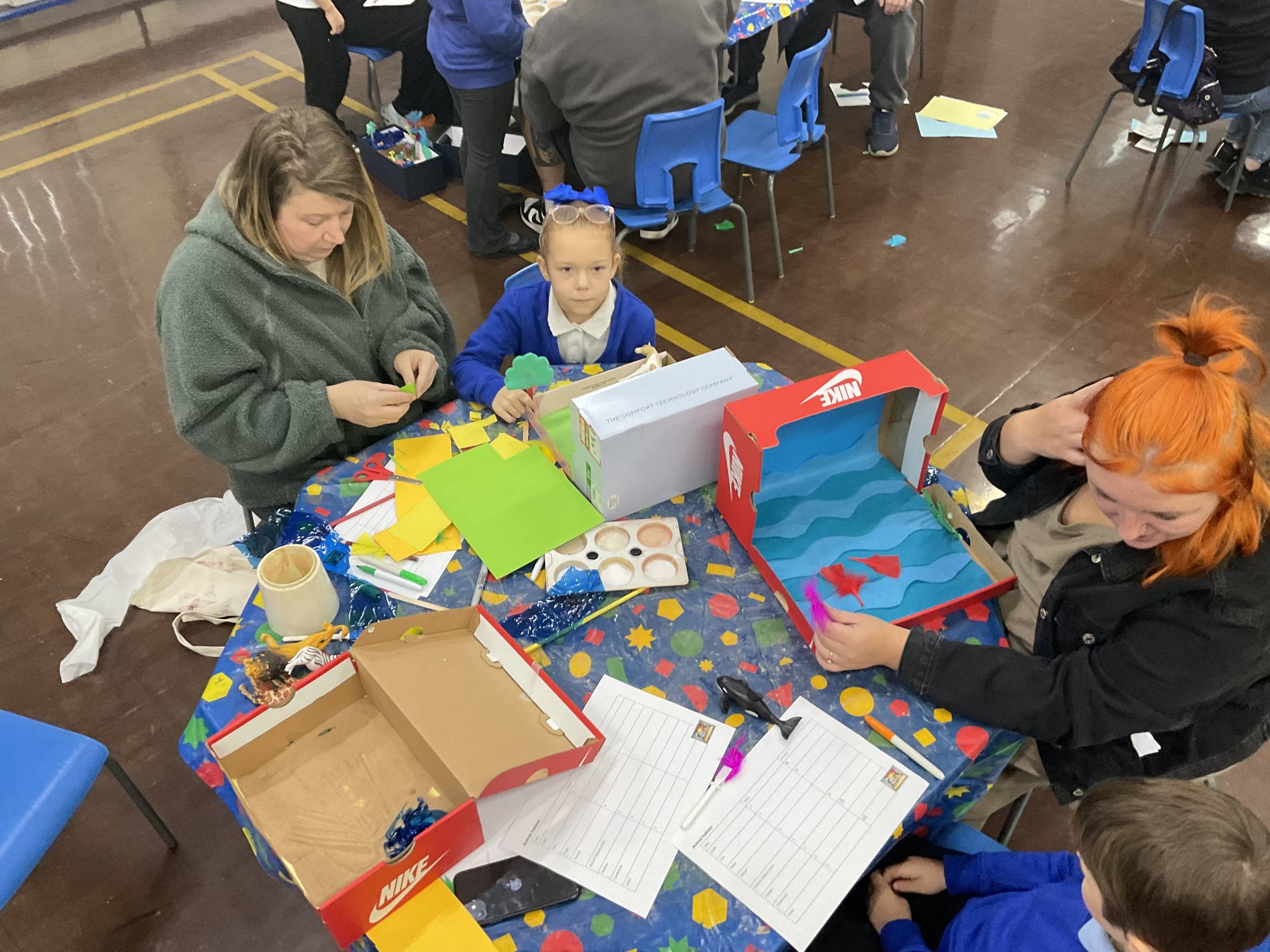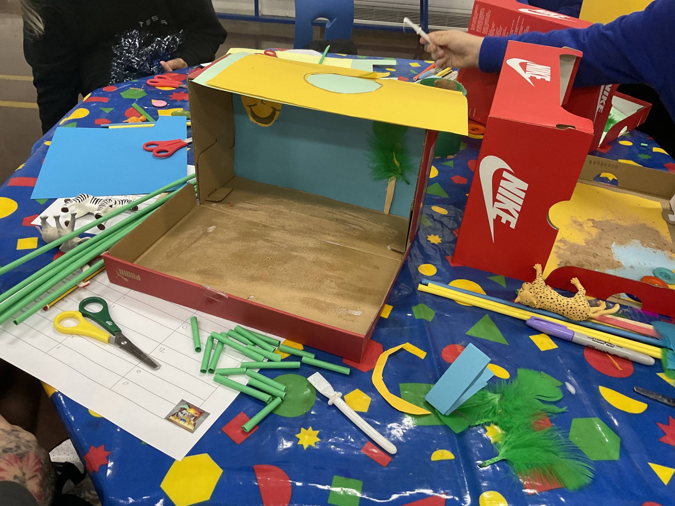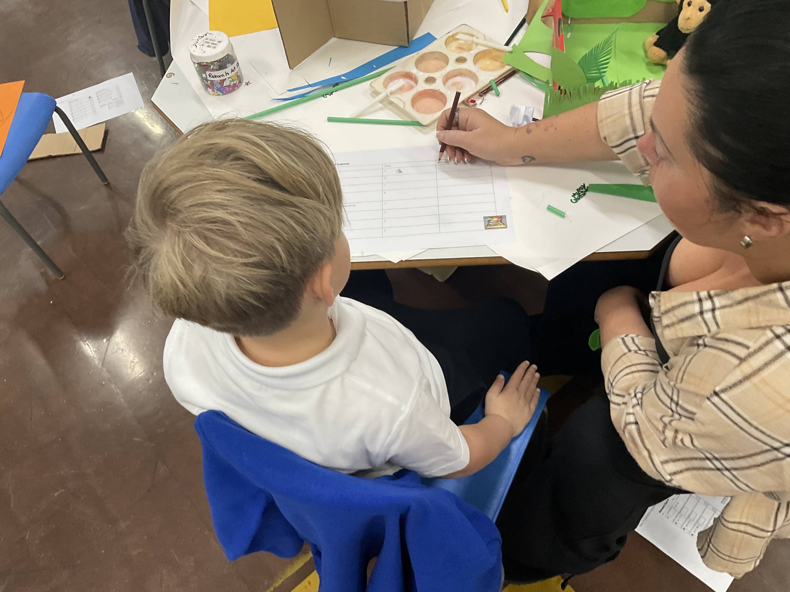 In Science we have been learning about animals including humans. We introduced the term habitats and used a variety of materials to create them. We focused on what the animal would need to survive, by using a variety of materials we were able to show where they live and some children showed what food they eat! We then made links to maths by giving each material a cost. Our workshop allowed the parents/ carers to work collaboratively with their child to create the habitats whilst also using addition to find an overall total cost.
